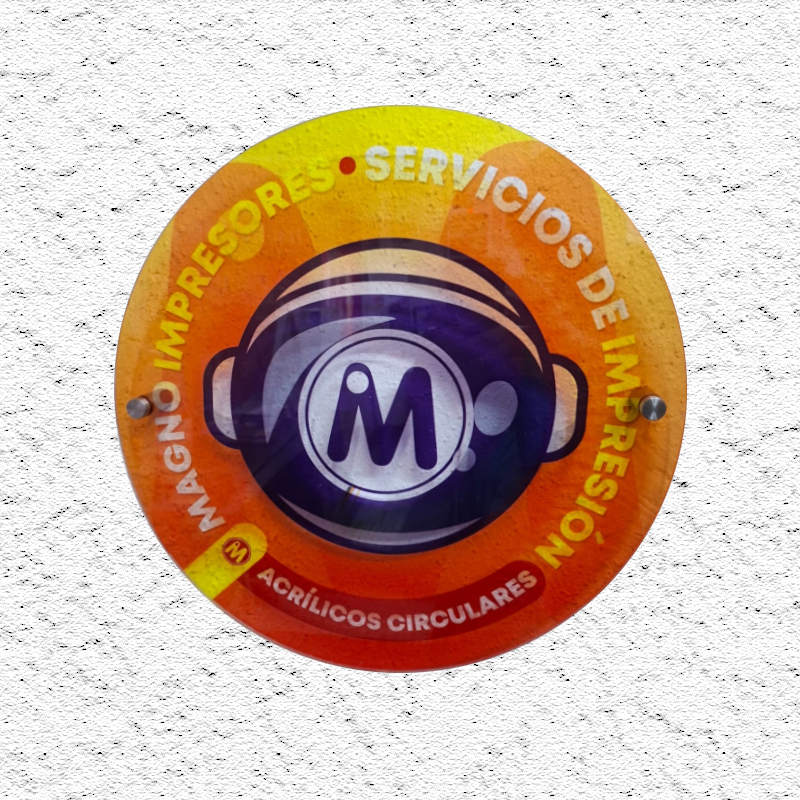 Acrílico circular impreso transparente, tamaño 40×40 + 2 embellecedores.