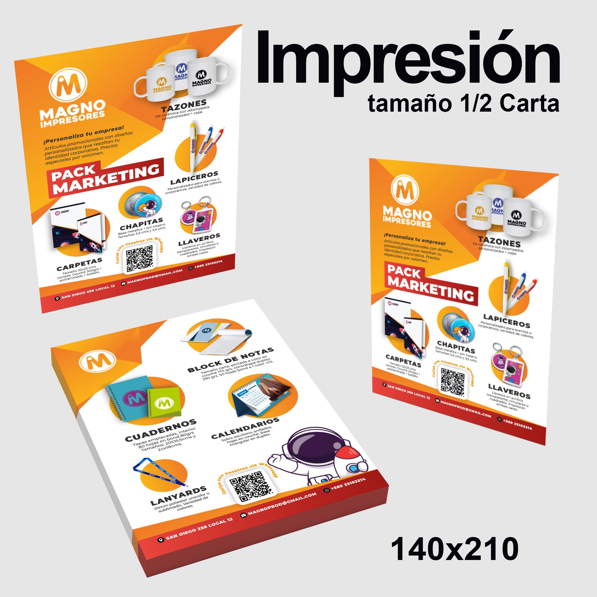 Impresión láser color. 1 cara en Couché 130 grs. opaco. Medida: 10 x 14 cm. 100 unidades.